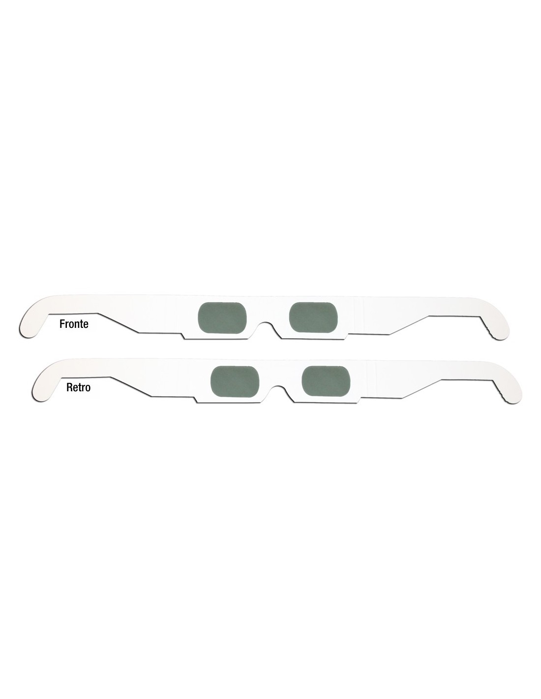 Occhiali 3D in cartoncino rigido bianchi con lenti a polarizzazione lineare (45°/135°) misura adulto. Per quotazioni personalizzate su quantità e stampa in 4 colori, contattateci via e-mail a info@agmultivision.it