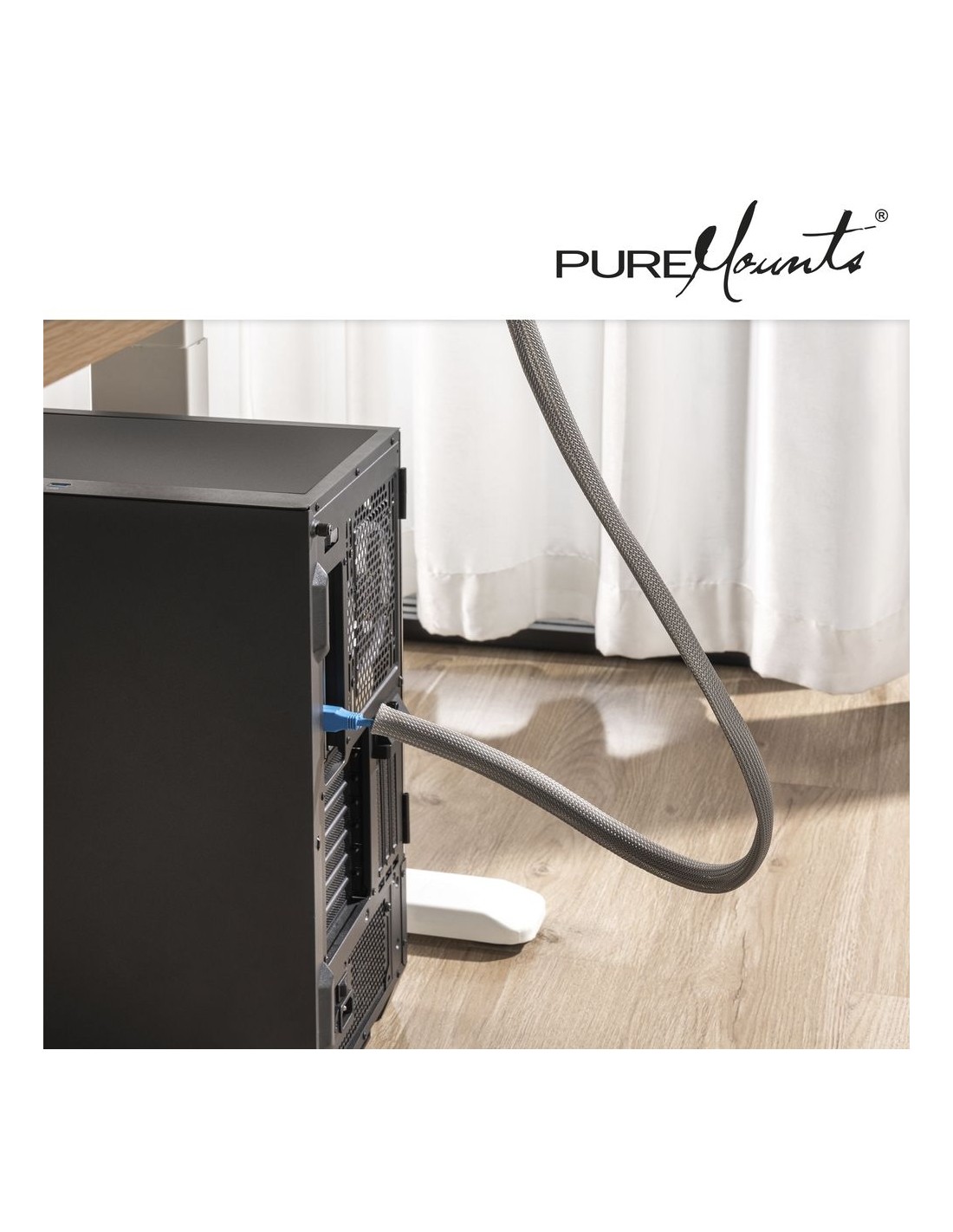 "Organizza e proteggi i tuoi cavi con la guaina passacavi in poliestere flessibile e resistente PureMounts, lunga 50 m, grigia."