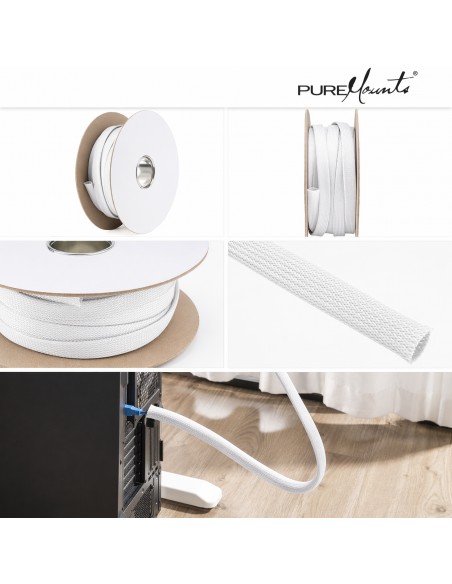 "Organizza e proteggi i tuoi cavi con la guaina passacavi in poliestere flessibile e resistente PureMounts, lunga 50 m, bianca."