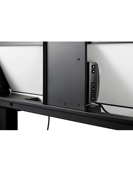 Grazie alla regolazione in altezza con la semplice pressione di un pulsante, tramite il telecomando cablato o direttamente dal display interattivo*, l’utente può programmare tre altezze predefinite e avviare rapidamente la lezione o la presentazione.