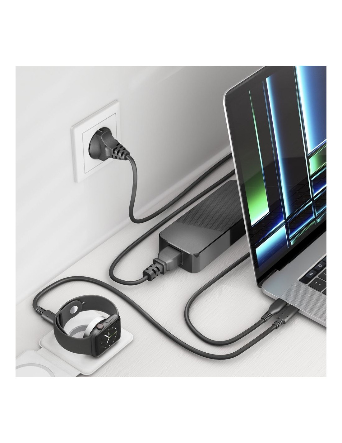 Migliora la tua configurazione con l’alimentatore USB-C da 100W con Power Delivery. Le sue funzionalità avanzate e le prestazioni affidabili lo rendono un accessorio essenziale per qualsiasi spazio di lavoro moderno.