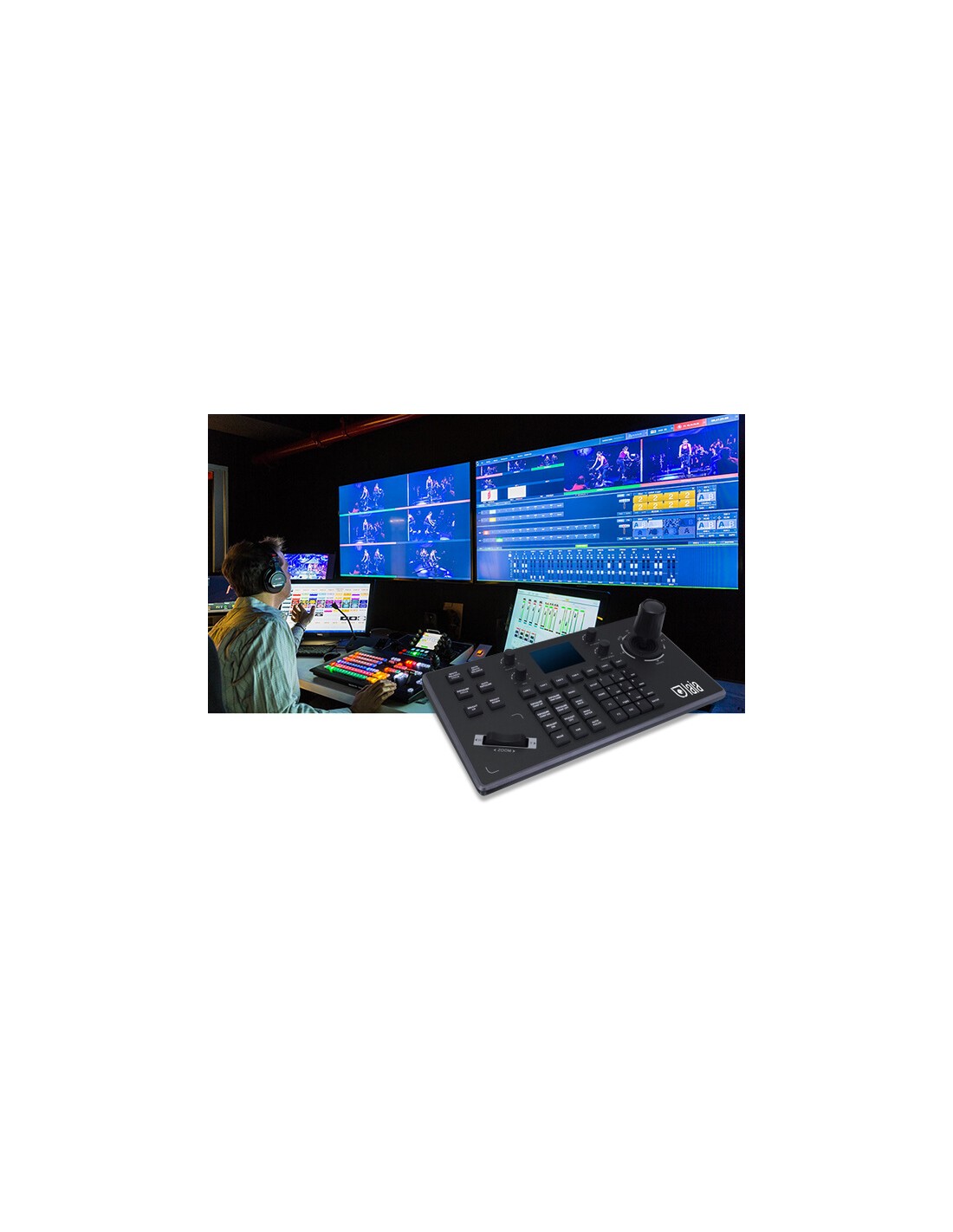 Joystick IP Controller, valido per qualsiasi telecamera con protocollo VISCA over IP. Controllo PTZ con regolazioni di velocità, messa a fuoco, zoom, ecc.