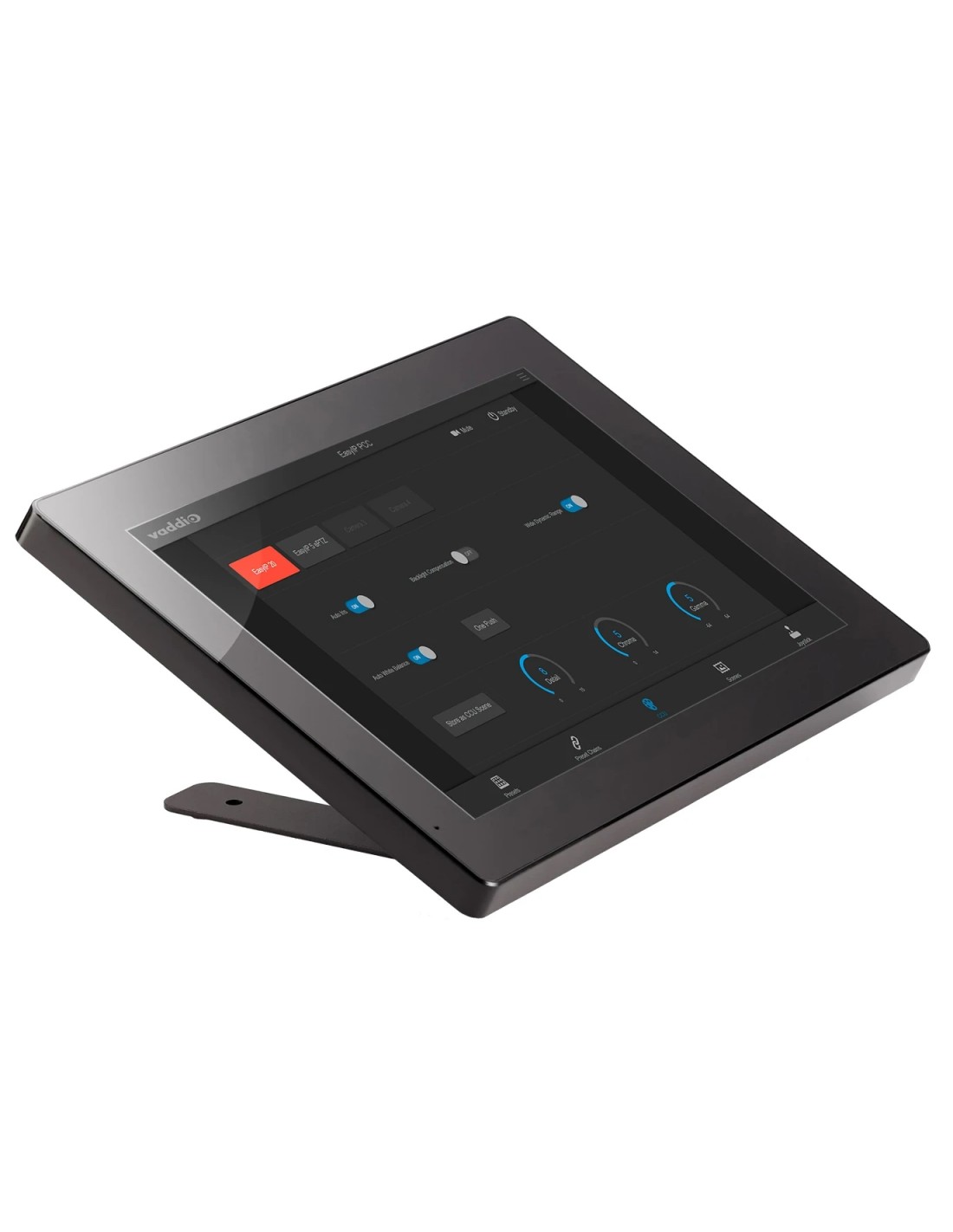 Vaddio Device Controller è un pannello touch a colori progettato per accedere facilmente alle interfacce utente basate sul web di dozzine di dispositivi collegati a Vaddio come le telecamere PTZ , periferiche EasyIP, bridge AV e altro ancora. Il touch screen da 10 pollici è alimentato tramite PoE e consente un posizionamento flessibile nelle installazioni AV professionali. Il supporto da tavolo incluso è progettato per fornire una gestione sicura dei cavi, un'estetica moderna e angoli di visione ottimali.