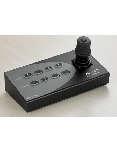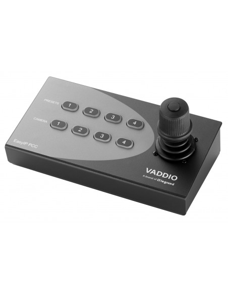 PCC Mini, Precision Camera Controller di Vaddio, è un joystick ergonomico ed economico per controllare fino a quattro telecamere Vaddio tramite il protocollo IP.