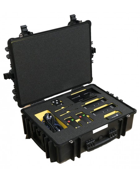 Una custodia rigida in plastica impermeabile con ritagli CNC per il sistema Full MasterCue V7. La schiuma interna è nera con il corpo principale giallo per facilitare il personale tecnico del backstage su ciò che potrebbe mancare quando si imballano gli eventi. Prodotta in Italia, ha già dimostrato affidabilità: molto robusti per proteggere questi preziosi prodotti.