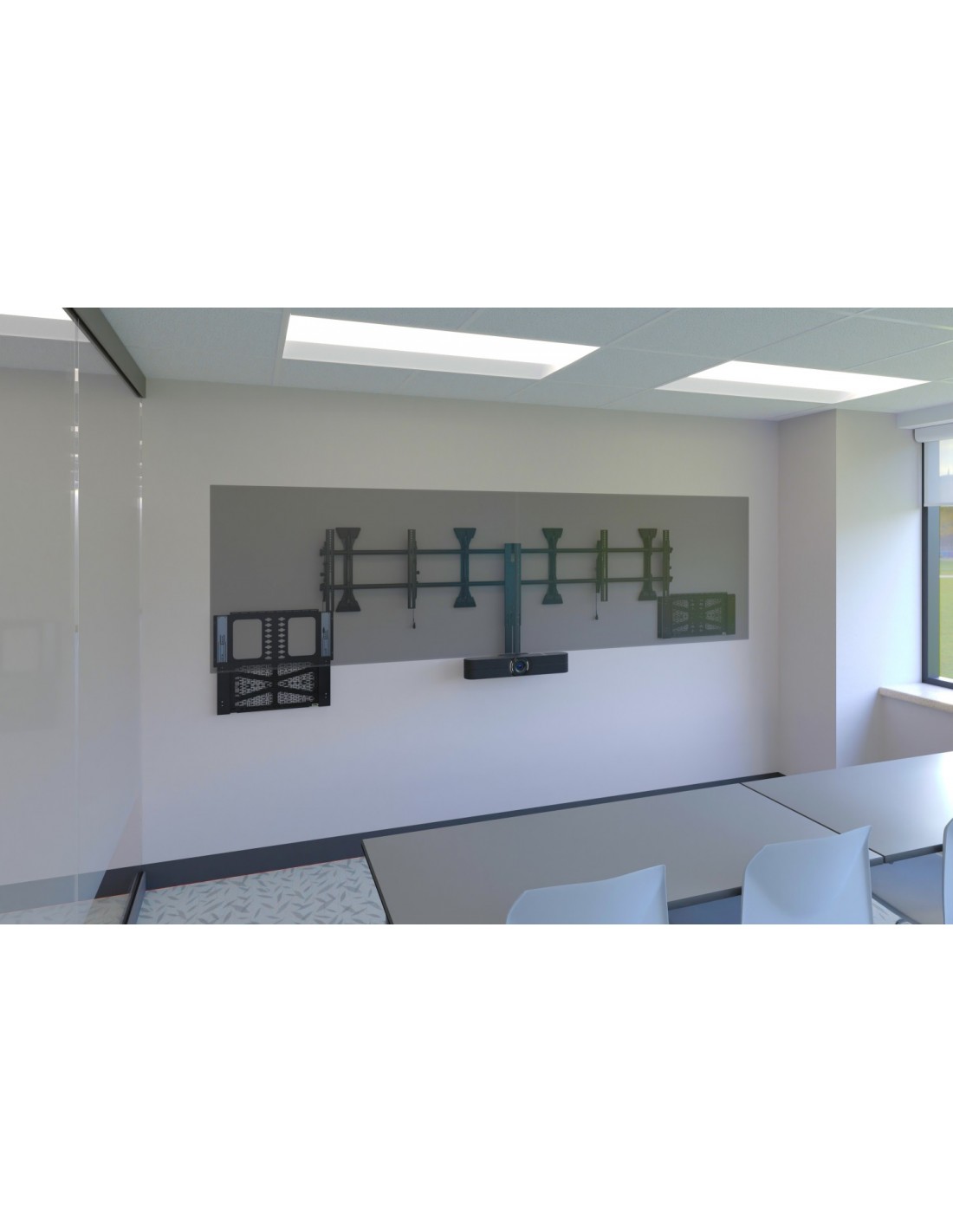 - L'unico pannello di montaggio verticale con un design scorrevole che si estrae da dietro il display per una facile manutenzione e occultamento delle apparecchiature