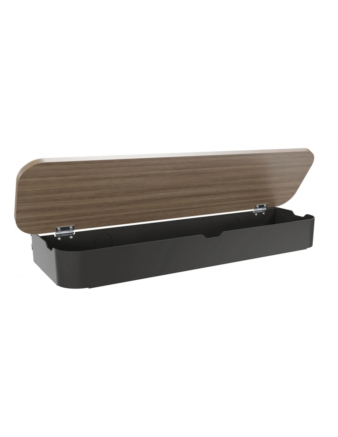 Elegante accessorio per mensola con venature del legno per ulteriore spazio di archiviazione. Può essere montato con regolazione senza attrezzi sulla parte anteriore o posteriore del carrello. Ottimo per archiviare tutte le tue esigenze di conferenza, Clickshare, altri dongle per condivisione wireless, stilo, penne, dispositivi di ricarica e controller. Sul retro del ripiano sono previsti due fori per la gestione dei cavi.