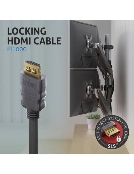 Le spine HDMI convenzionali perdono facilmente aderenza nella presa. La soluzione: adattatori PureLink High Speed HDMI con Secure-Lock-System. La tecnologia SLS è stata sviluppata da PureLink appositamente per un uso più sicuro delle connessioni HDMI. Questo design di spina è unico sul mercato attuale e migliora la stabilità della connessione anche con alti tassi di trazione, fissando permanentemente la connessione.