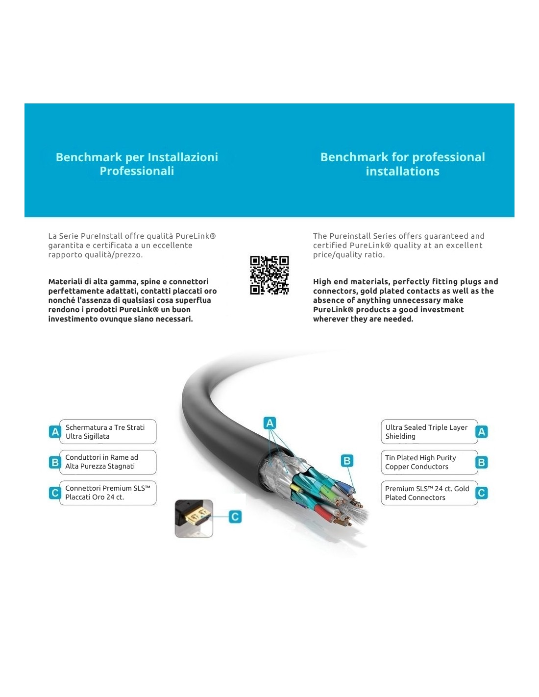 Materiali di alta qualità, spine e accoppiatori su misura, pin placcati oro nonché eliminazione di parti non necessarie rendono i prodotti PureInstall un buon investimento per qualsiasi campo d'uso.
