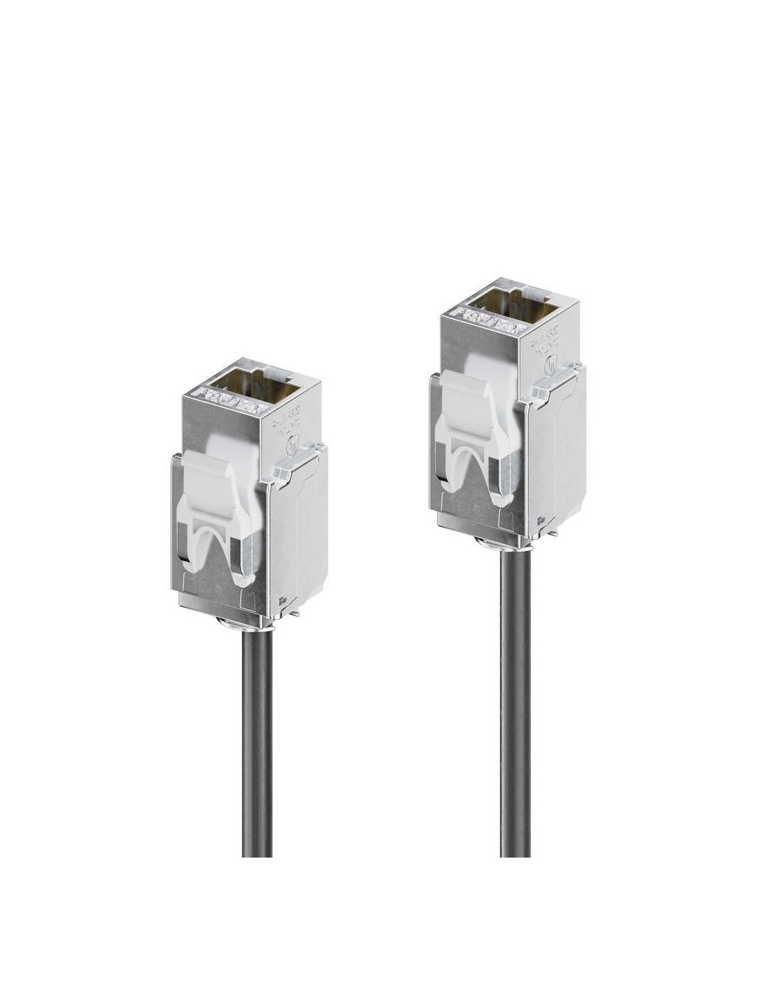 - Cavo pigtail Keystone Cat.6a: Questo assemblaggio presenta un cavo Cat.6a di alta qualità realizzato con precisione, terminato con connettori keystone RJ45 femmina su entrambe le estremità. Il design è ottimizzato per l’integrazione in pannelli modulari da scrivania o workspace, supportando interconnessioni affidabili tra dispositivi utente in installazioni AV professionali.