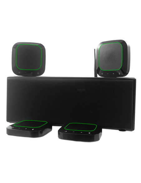 Laia t-Pod Quad 22 Plus è un controller audio per videoconferenze di rete basato sulla comunicazione Internet. Con 4 microfoni omnidirezionali collegati in cascata in modalità wireless in 2.4G, può essere collegato a una serie di altoparlanti attivi, inoltre include un altoparlante attivo integrato per rendere le tue riunioni un'esperienza più completa.