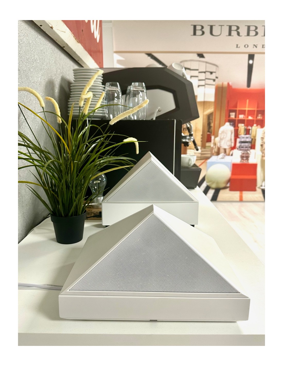 - Grazie al suo design unico ed all'ottima qualità dell'audio, copre fino a 150 m2 per altoparlante.