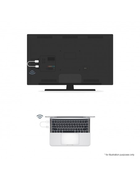 Consente di trasferire contenuti istantaneamente da qualsiasi dispositivo utilizzando la connessione HDMI, senza cavi o software. Gli utenti possono trasmettere presentazioni e altri contenuti da qualsiasi dispositivo dotato di connessione HDMI a 50-60 ms e da una distanza massima di 20 metri.