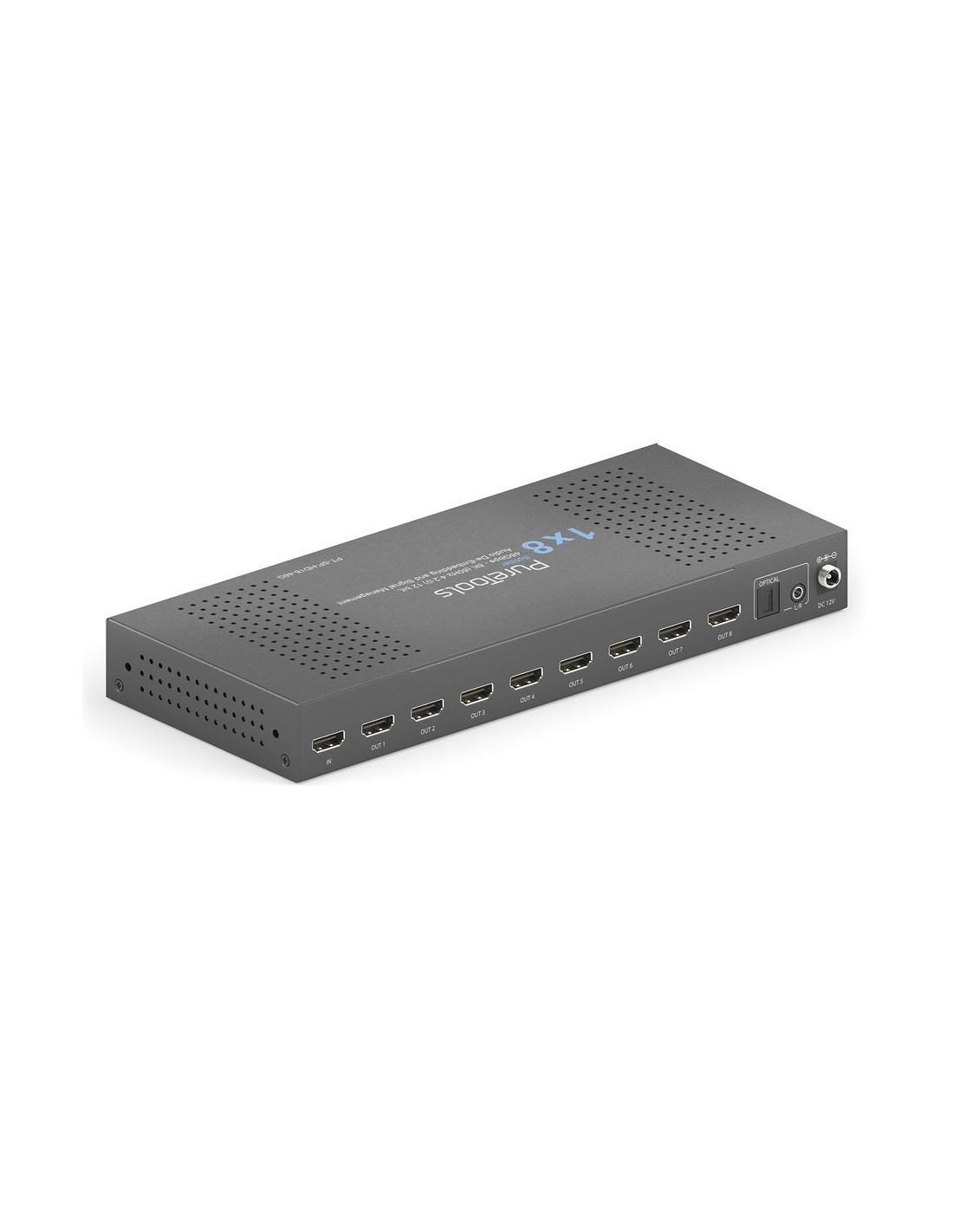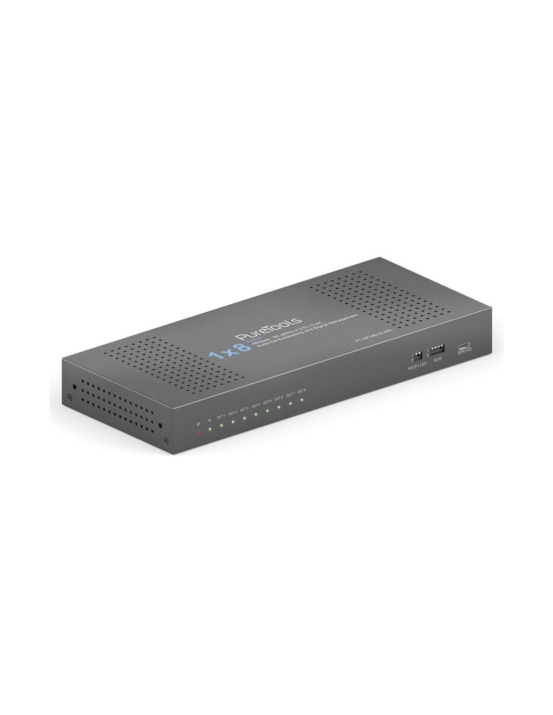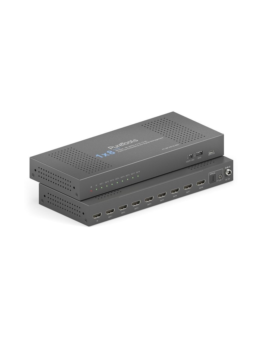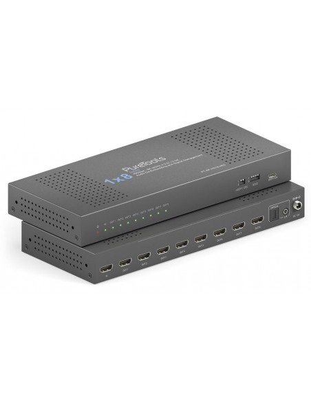 PT-SP-HD18-48G offre una distribuzione del segnale HDMI 2.1 affidabile, gestione avanzata EDID e HDCP e downscaling integrato per diverse applicazioni AV. Combinando supporto video ad alta larghezza di banda, estrazione audio multi-formato e funzioni di controllo selezionabili, questa unità garantisce un funzionamento stabile sia in sistemi AV moderni sia legacy in installazioni professionali.