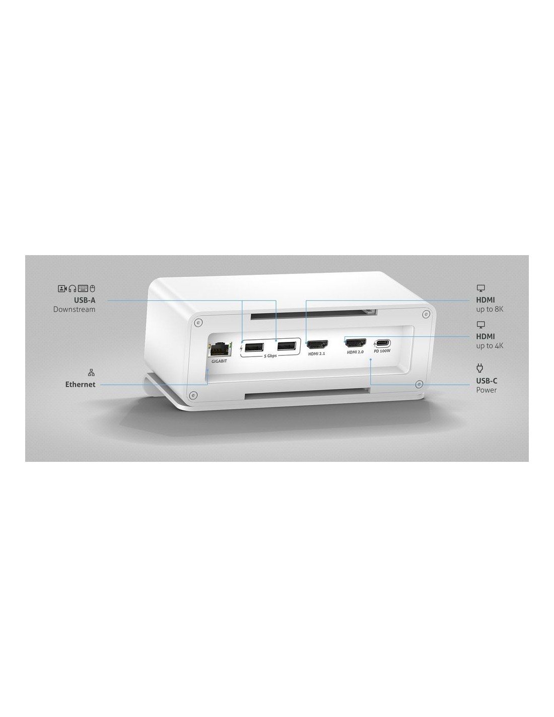 - Ethernet Gigabit, tre porte USB 5Gbps e fino a 100W PD: Rimani connesso e alimentato grazie a Ethernet Gigabit, tre porte USB da 5Gbps e fino a 100W di Power Delivery. Queste caratteristiche garantiscono velocità elevate di trasferimento dati e una ricarica efficiente dei dispositivi.