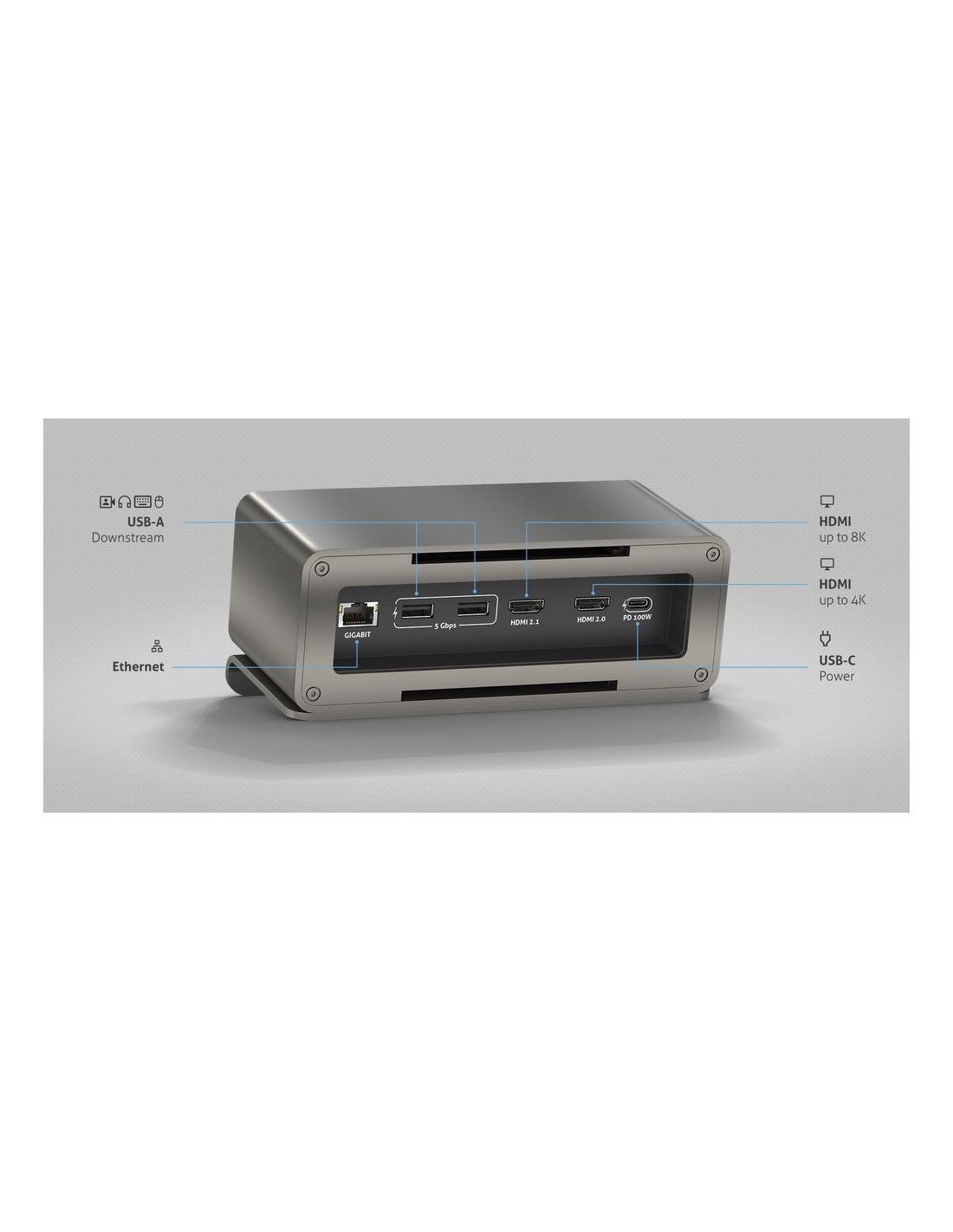 - Ethernet Gigabit, tre porte USB 5Gbps e fino a 100W PD: Rimani connesso e alimentato grazie a Ethernet Gigabit, tre porte USB da 5Gbps e fino a 100W di Power Delivery. Queste caratteristiche garantiscono velocità elevate di trasferimento dati e una ricarica efficiente dei dispositivi.