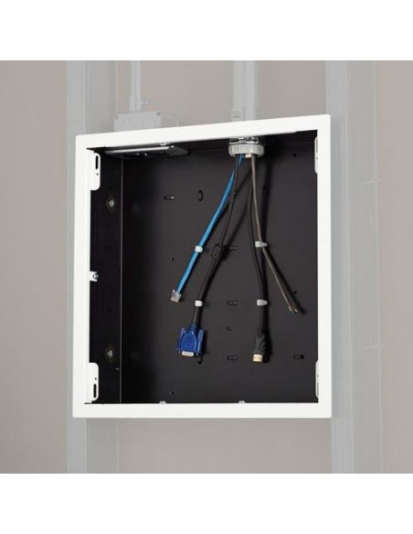 PAC526FW - Scatola ad incasso per organizzazione e alloggiamento cavi, alimentatori e altri accessori con flangia estetica - dimensioni 361,95 x 361,95 x 99,06 mm. Compatibile con staffe da parete serie PST, PRO, PLP, MSR, MTR, MWH, MWR, PWR, PNR, PDR, Th