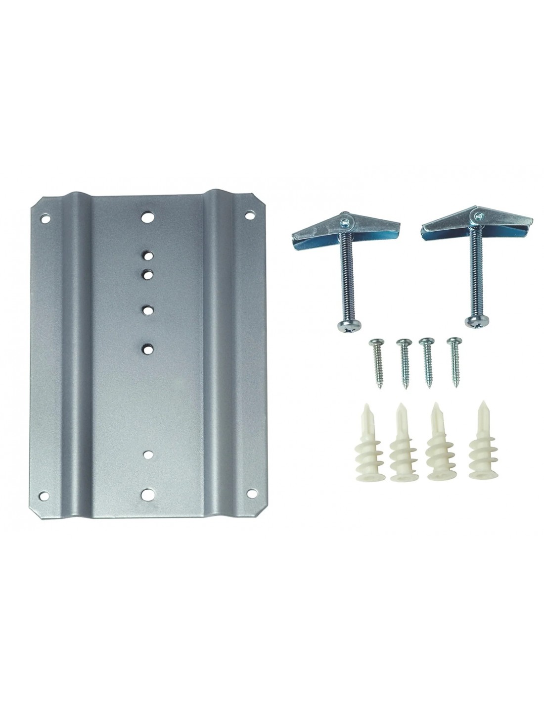 - Include elementi di fissaggio per fissare il supporto alla piastra e la piastra alla parete con montanti metallici