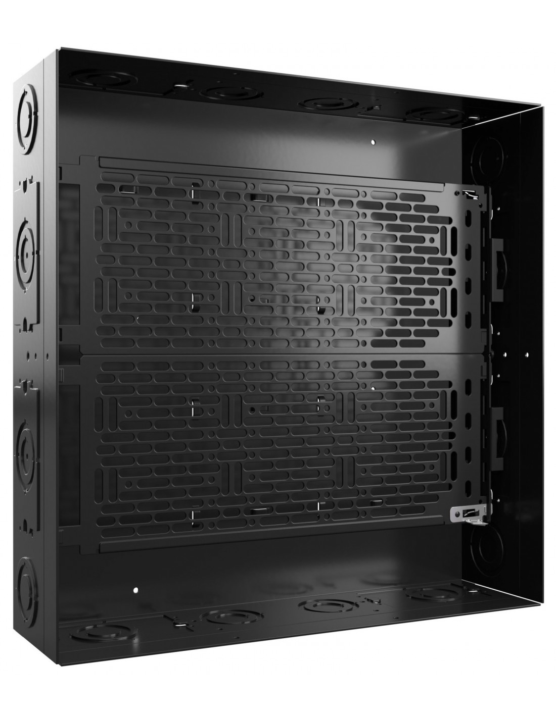 La piastra PACL2 Lever Lock™ consente il fissaggio sicuro di apparecchiature AV all'interno di PAC526 e PAC527L In-Wall Storage Box. Installare le staffe di montaggio incluse nella scatola di immagazzinaggio a parete PAC526 o PAC527L, quindi far scorrere la piastra Lever Lock™ senza attrezzi all'interno della scatola. La piastra PACL2 Lever Lock™ può essere montata su quattro diversi livelli per organizzare e stratificare facilmente i componenti all'interno della scatola da incasso.