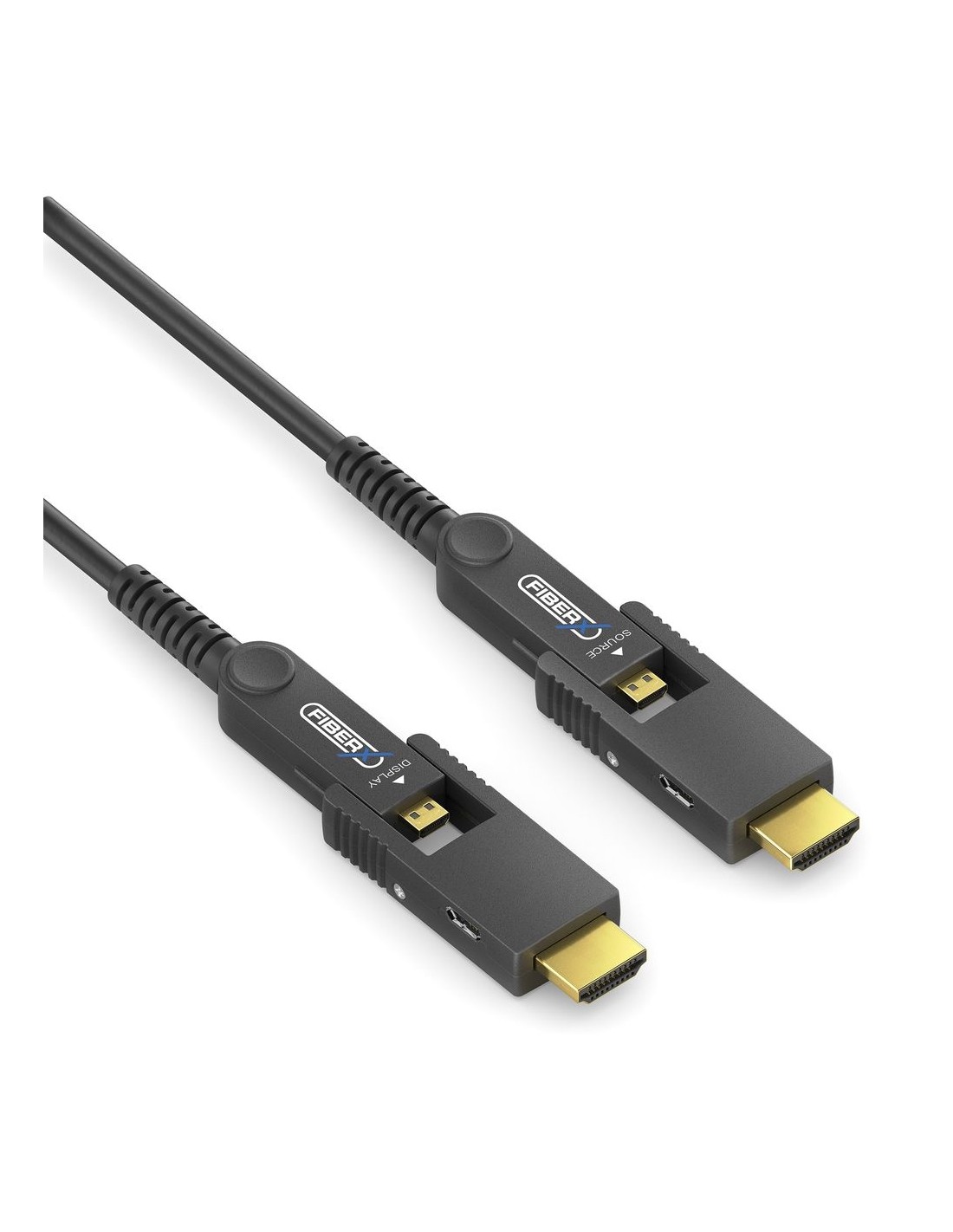 Il cavo ottico attivo ibrido FX-I352 combina trasmissione AV in fibra ottica con conduttori in rame per alimentazione e dati, supportando segnali HDMI 2.0 ad alta larghezza di banda in ambienti AV impegnativi. Il suo design con connettore HDMI-A rimovibile facilita la distribuzione in installazioni con accesso ristretto, come attraverso condotti o all'interno di rack. Il diametro esterno compatto del cavo e la schermatura avanzata EMI/RFI garantiscono interferenze minime, rendendolo adatto a sale riunioni, spazi di controllo e digital signage dove l'integrità del segnale è critica. L'iniezione di alimentazione Micro USB su entrambi i lati sorgente e sink migliora ulteriormente la compatibilità tra diverse piattaforme hardware.