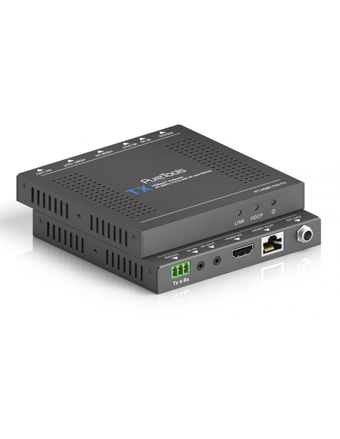 PT-HDBT-702-TX è un trasmettitore pienamente conforme allo standard HDBaseT. È in grado di trasmettere video Full HD fino a 70m e 4K/UHD fino a 40m con audio multicanale incorporato e segnali di controllo. È persino compatibile con CEC, permettendo il pass-through di CEC per semplificare il controllo del sistema con un unico telecomando. Il suo PoH bidirezionale permette l'alimentazione remota di una sorgente o unità trasmettitore, oppure può essere alimentato da qualsiasi altro dispositivo compatibile PoH.