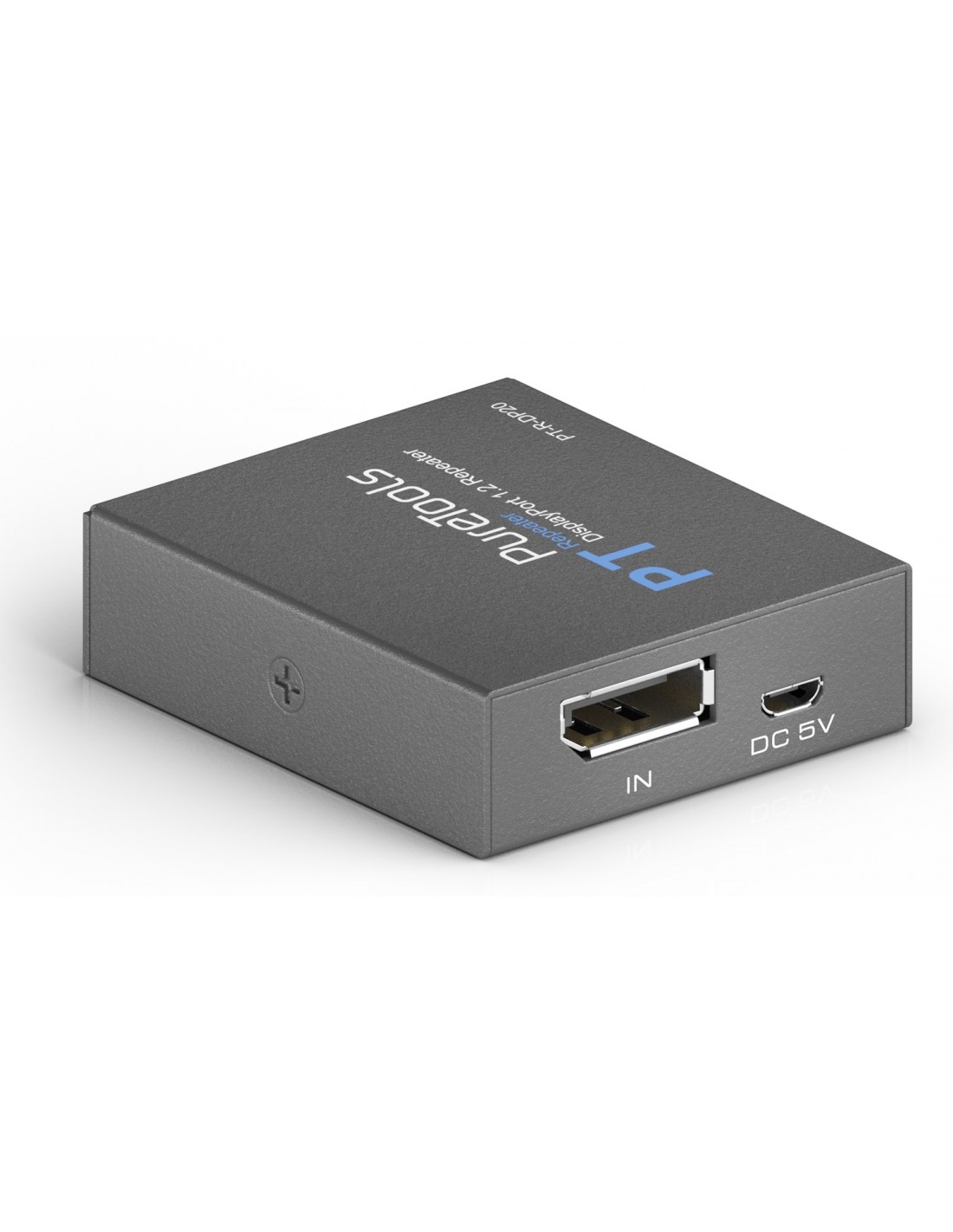 Il ripetitore DisplayPort attivo PT-R-DP20, incluso nella serie PureTools, consente il collegamento di due cavi DisplayPort per estendere la distanza di una connessione DP. Il ripetitore supporta segnali DP 1.2 fino a 21,6Gbps e Dual Mode (DP++) per segnali 4K fino a 17,5 m o FullHD fino a 30 m. Questo amplificatore di segnale è quindi particolarmente adatto per applicazioni e installazioni professionali. L’elevata affidabilità e le prese dorate perfettamente aderenti garantiscono sempre una connessione stabile e duratura.