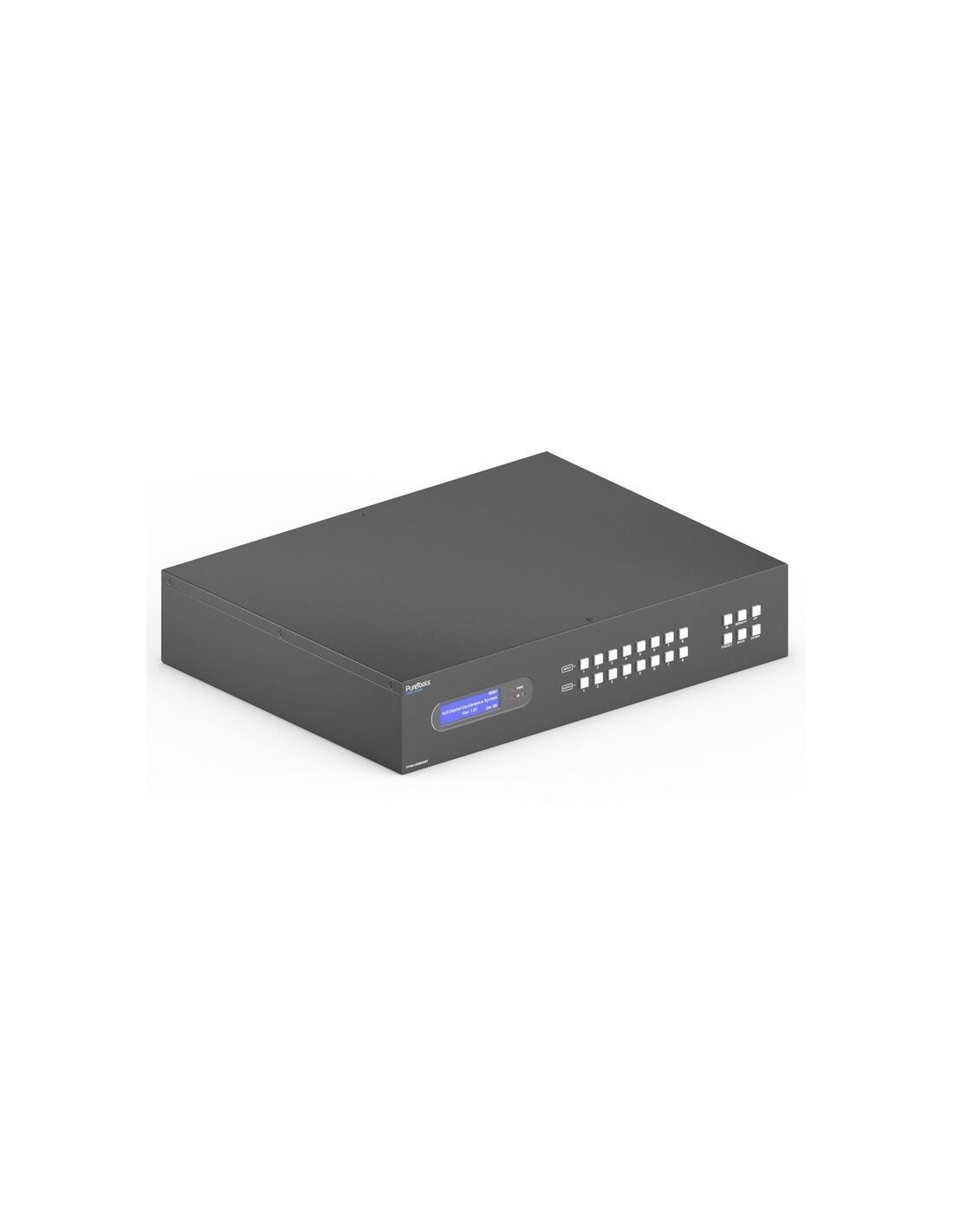 - Design compatto ed efficiente: alloggiata in un contenitore rack 1U, questa matrice è progettata per una facile installazione e un’ottimizzazione dello spazio. I ricevitori sono venduti separatamente, offrendo flessibilità nella configurazione del sistema.