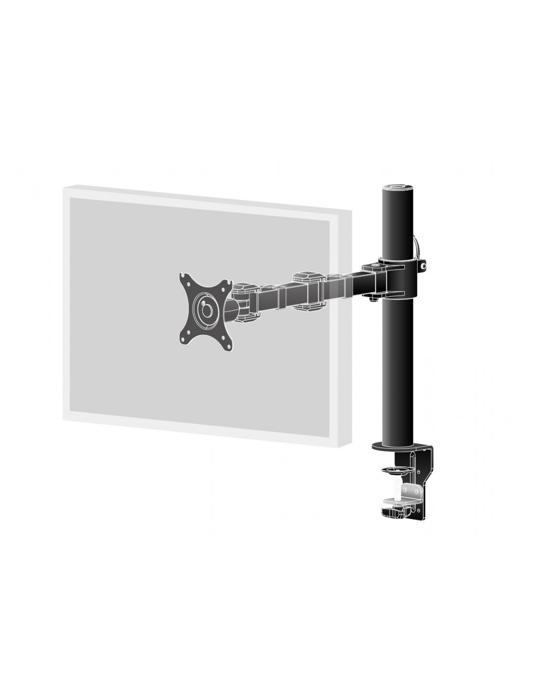 Braccio flessibile da scrivania per monitor singolo. Fissaggio con morsetto o foro. Per monitor da 10 a 30 pollici, VESA 75x75 o 100x100 mm., <=10kg.