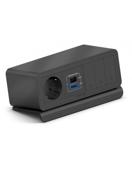 - Preconfigurato con una presa AC, modulo PD da 65W e tre moduli vuoti: Fornito con una presa AC europea DE (CEE 7/3) ruotata di 45° per un accesso più agevole e un modulo Power Delivery da 65W - USB-C: 65W PD | USB-A: 18W QC | USB-C + USB-A: 5V 3A per porta - preinstallato insieme a piastre cieche abbinate. Consente un utilizzo immediato e facilita successive espansioni con moduli AV basati su ICS.