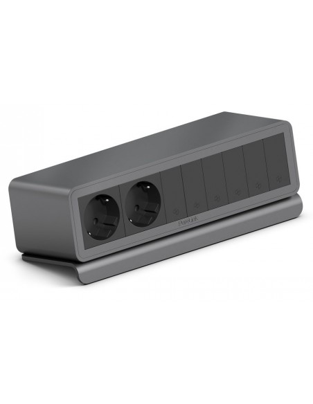 Questo contenitore mediahub2 è costituito da un telaio in alluminio solido a 10 slot progettato per il posizionamento autoportante su superfici da tavolo in sale riunioni, ambienti di lavoro ibridi o contesti didattici AV. I suoi moduli, progettati con precisione, utilizzano il sistema ICS (Individual Connection System), un’interfaccia senza utensili e senza viti che mantiene un’estetica pulita consentendo al contempo una personalizzazione di livello professionale in pochi secondi. Il contenitore viene fornito preconfigurato con doppie prese AC e sei alloggiamenti vuoti, permettendo un utilizzo immediato con possibilità di espansione futura. Dotato di un cavo di alimentazione integrato da 1 m e connettore Wieland GST18, l’unità si integra direttamente nelle reti di alimentazione dei mobili AV. La compatibilità con tutti i moduli, cavi e accessori di montaggio mediahub2 consente un rapido adattamento a installazioni fisse o sotto scrivania.