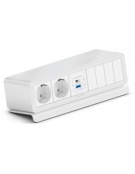 - Preconfigurato con doppie prese AC, modulo PD da 65W e quattro moduli vuoti: Fornito con due prese AC europee DE (CEE 7/3) ruotate di 45° per un accesso più agevole e un modulo Power Delivery da 65W - USB-C: 65W PD | USB-A: 18W QC | USB-C + USB-A: 5V 3A per porta - preinstallato insieme a piastre cieche abbinate. Consente un utilizzo immediato e facilita successive espansioni con moduli AV basati su ICS.