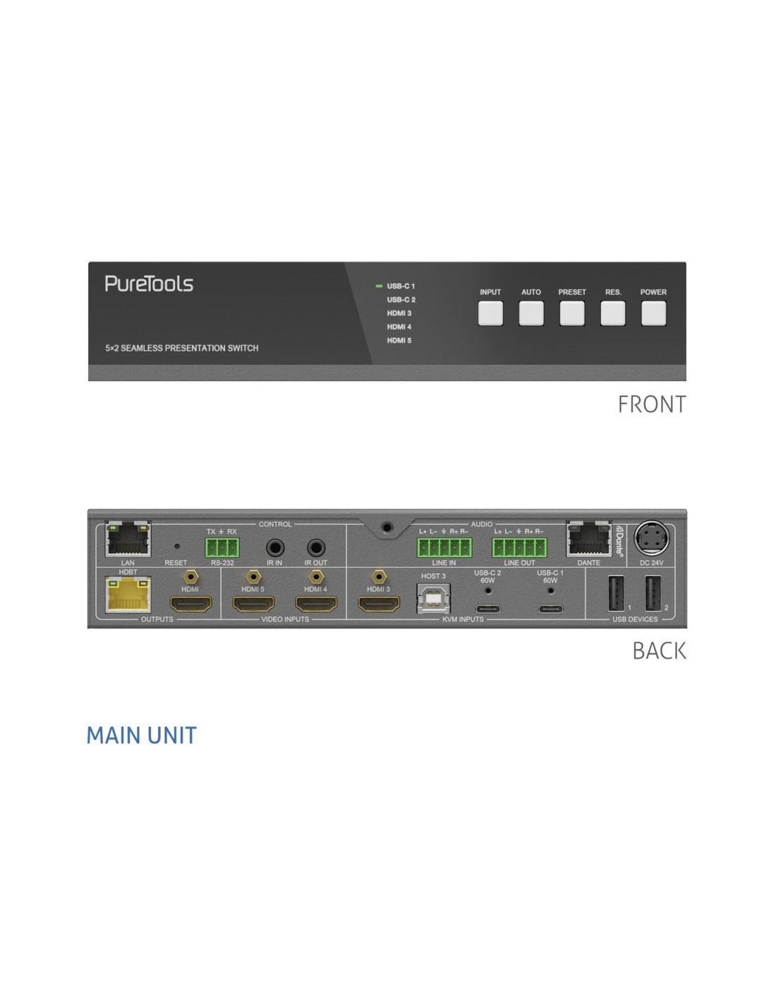 PureTools - Trasmettitore di collaborazione Multi-View HDBaseT 3.0 5x2 con Dante