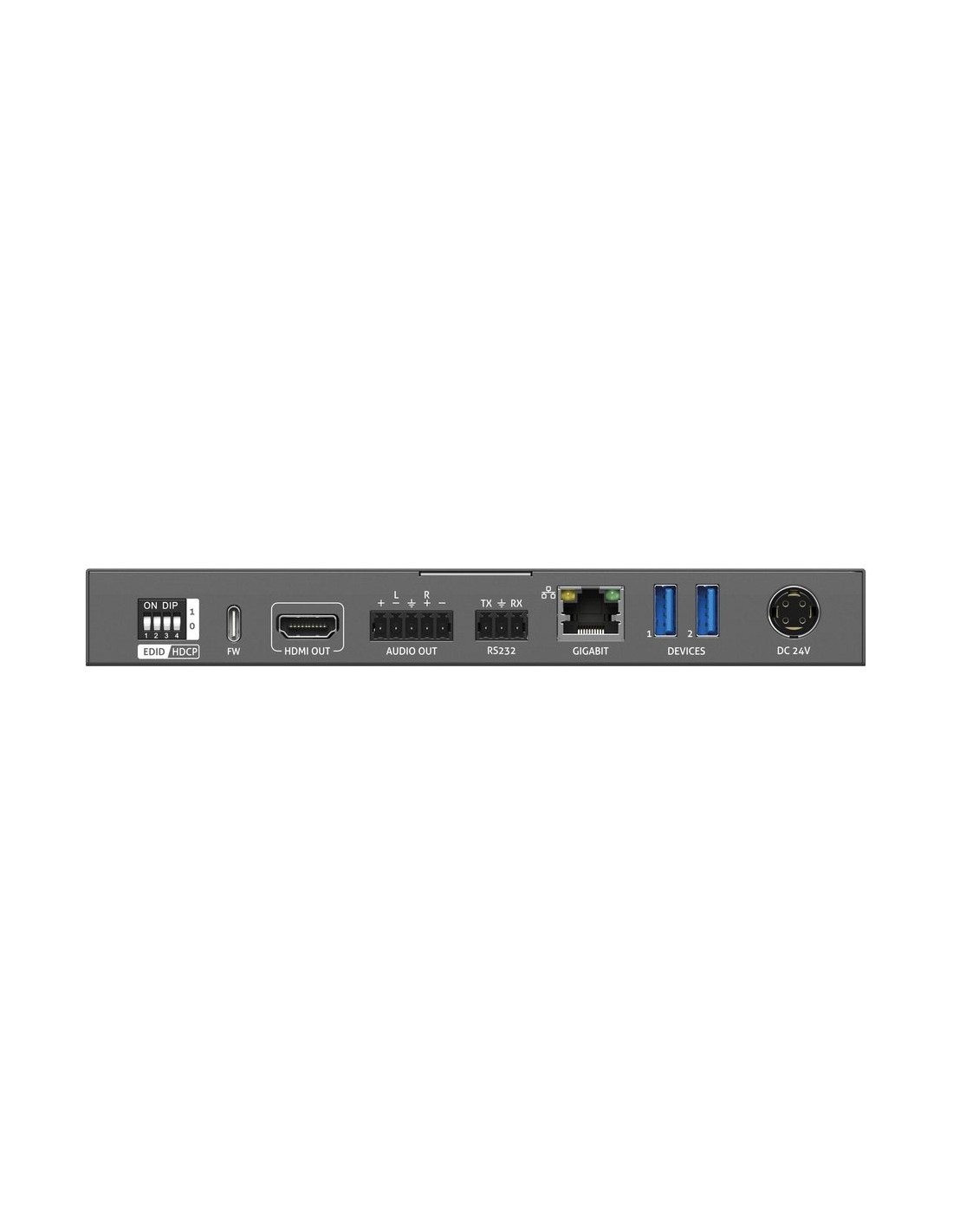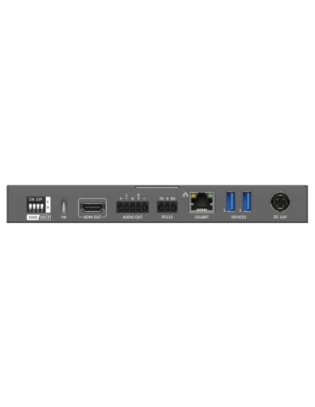 - Controllo integrato di schermo e sistema: Le interfacce CEC e RS232 permettono il controllo diretto dei display collegati, semplificando la commutazione delle sorgenti e la gestione dell’alimentazione.