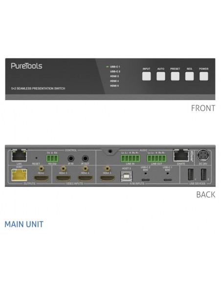 PureTools - Set switcher di collaborazione Multi-View HDBaseT 3.0 5x2 con Dante