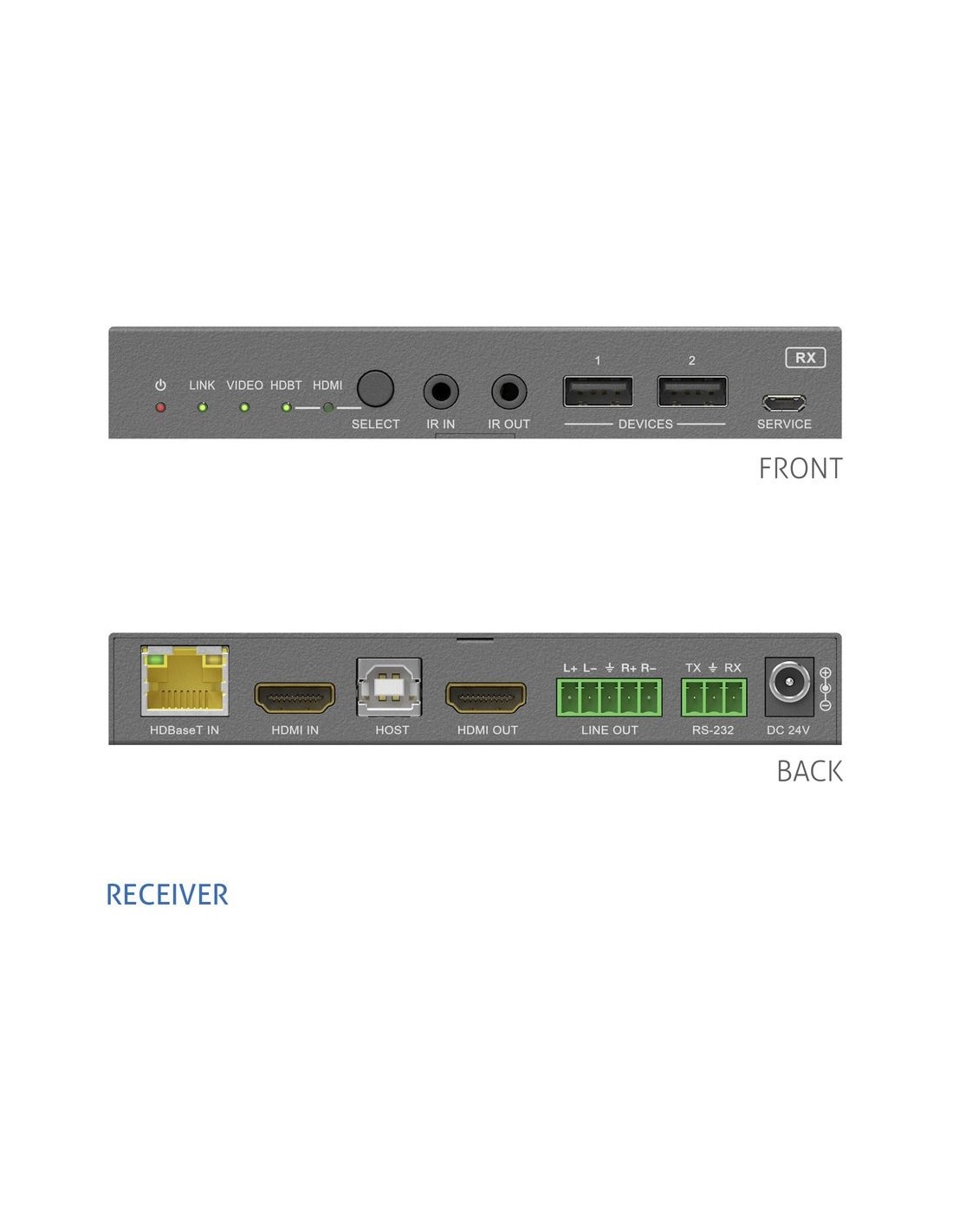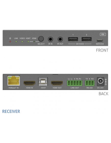 - 2x USB-A locali, 2x USB-A lato RX – ingressi HDMI e USB-B aggiuntivi lato ricevitore
