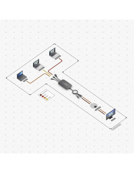 - Commutazione semplificata: Passa facilmente tra segnali HDMI, USB-C e mini DisplayPort con lo switcher di presentazione PureTools, offrendo una soluzione pratica per le tue esigenze di connettività.