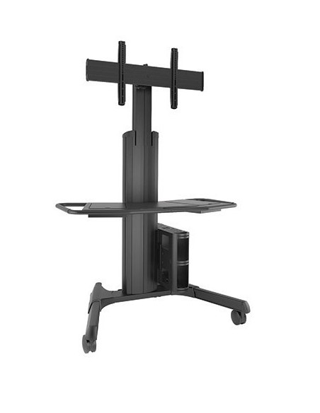 Questo carrello AV Fusion® mobile incorpora bordi arrotondati e caratteristiche eleganti per conferire al carrello un aspetto professionale più morbido che si adatta bene agli ambienti aziendali e scolastici. L'altezza può essere regolata da una persona manualmente o con una punta esagonale da 1/2" su un trapano elettrico.
