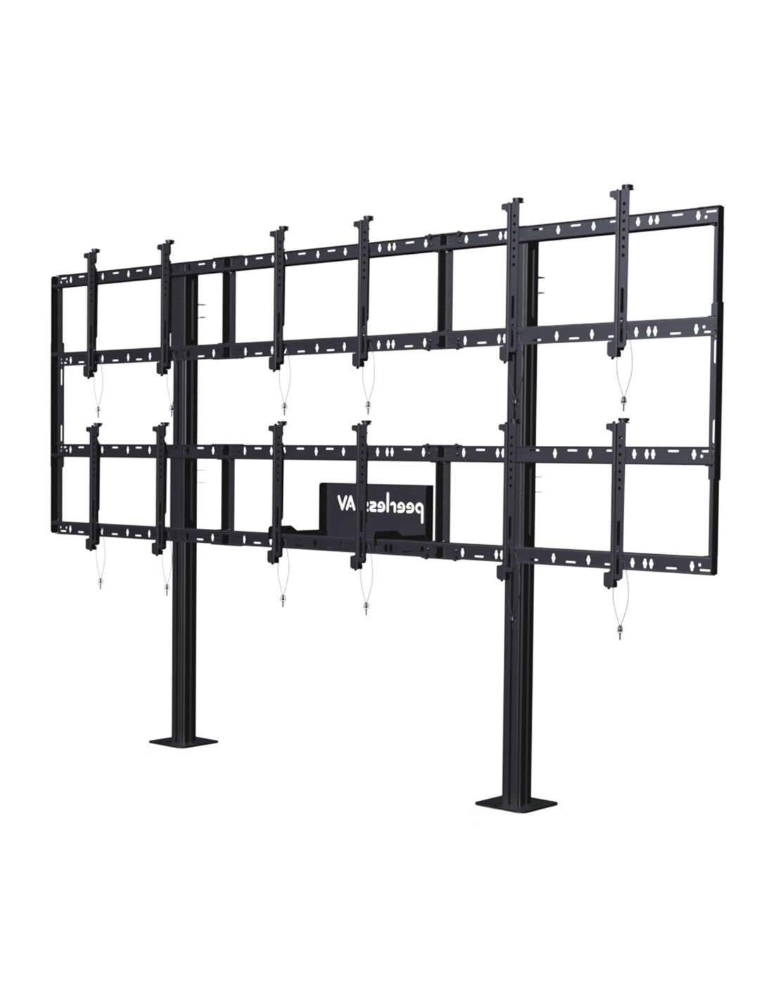 Il montaggio su piedistallo modulare per videowall di Peerless-AV comprende un assortimento di funzioni utili che eliminano la necessità di strumenti e hardware aggiuntivi, il tutto assicurando che la tua applicazione sia sicura e dall'aspetto professionale. La microregolazione senza attrezzi di DS-S555-3X2 fornisce la funzione di risparmio di tempo necessaria per un perfetto allineamento del display. Le funzionalità integrate di gestione dei cavi e archiviazione dei supporti forniscono una posizione centrale sicura per ospitare i componenti e contribuiscono a creare un aspetto pulito e ordinato. Se stai cercando una maggiore stabilità, questo supporto può essere montato su strutture in cemento senza supporti aggiuntivi per pareti o soffitti in qualsiasi punto vendita, stazioni per il trasporto pubblico o qualsiasi altro luogo ad elevata pedonabilità.