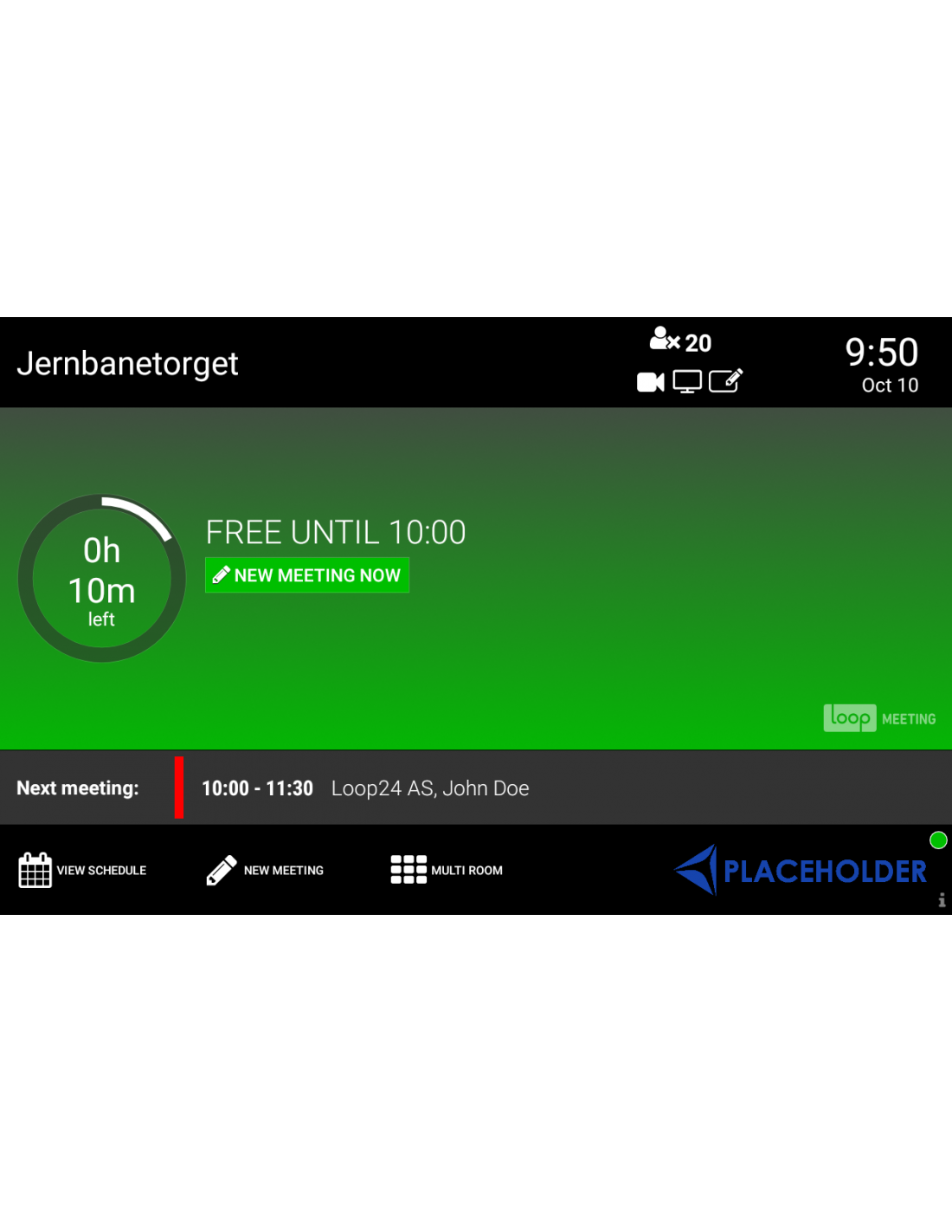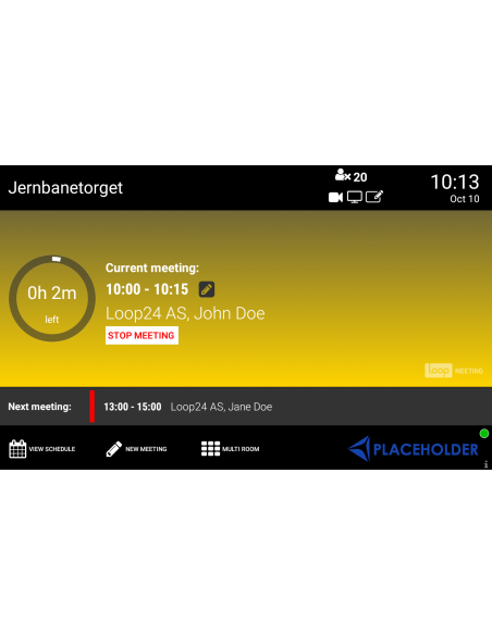 LoopMeeting è un'app nativa per Android, che funziona su Android 6.0 o versioni successive. Ha un'interfaccia semplice e intuitiva con un aspetto professionale. In combinazione con uno dei pannelli Loop24 o compatibili di terze parti, semplifica la ricerca e la prenotazione delle sale riunioni disponibili. È anche facile da configurare, personalizzare e amministrare. Puoi scegliere di eseguire l'app in modalità orizzontale o verticale.