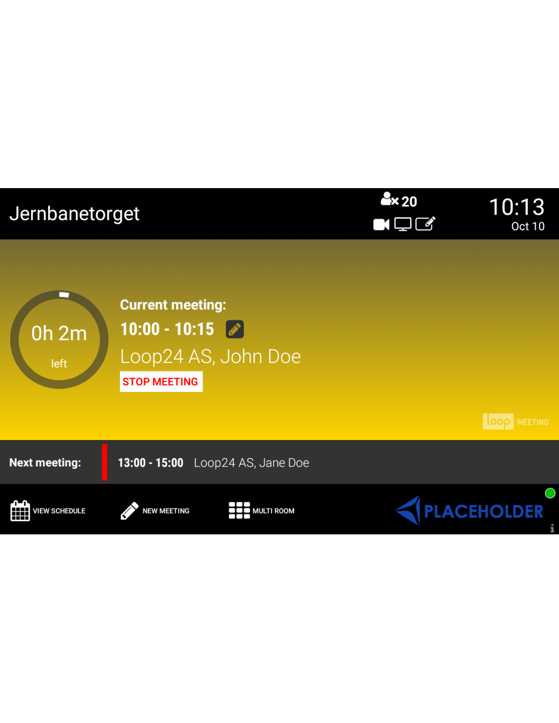 - Le riunioni che non durano quanto il tempo assegnato possono essere facilmente interrotte in anticipo dal pannello per liberare la sala a vantaggio di altri utenti
