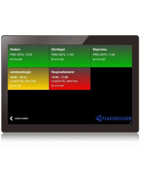 Pannello a parete per mostrare una panoramica di tutte le sale riunioni e prenotare le sale direttamente dal pannello. Oltre a questo pannello, è necessaria l'app LoopMeeting. Modalità Reception.