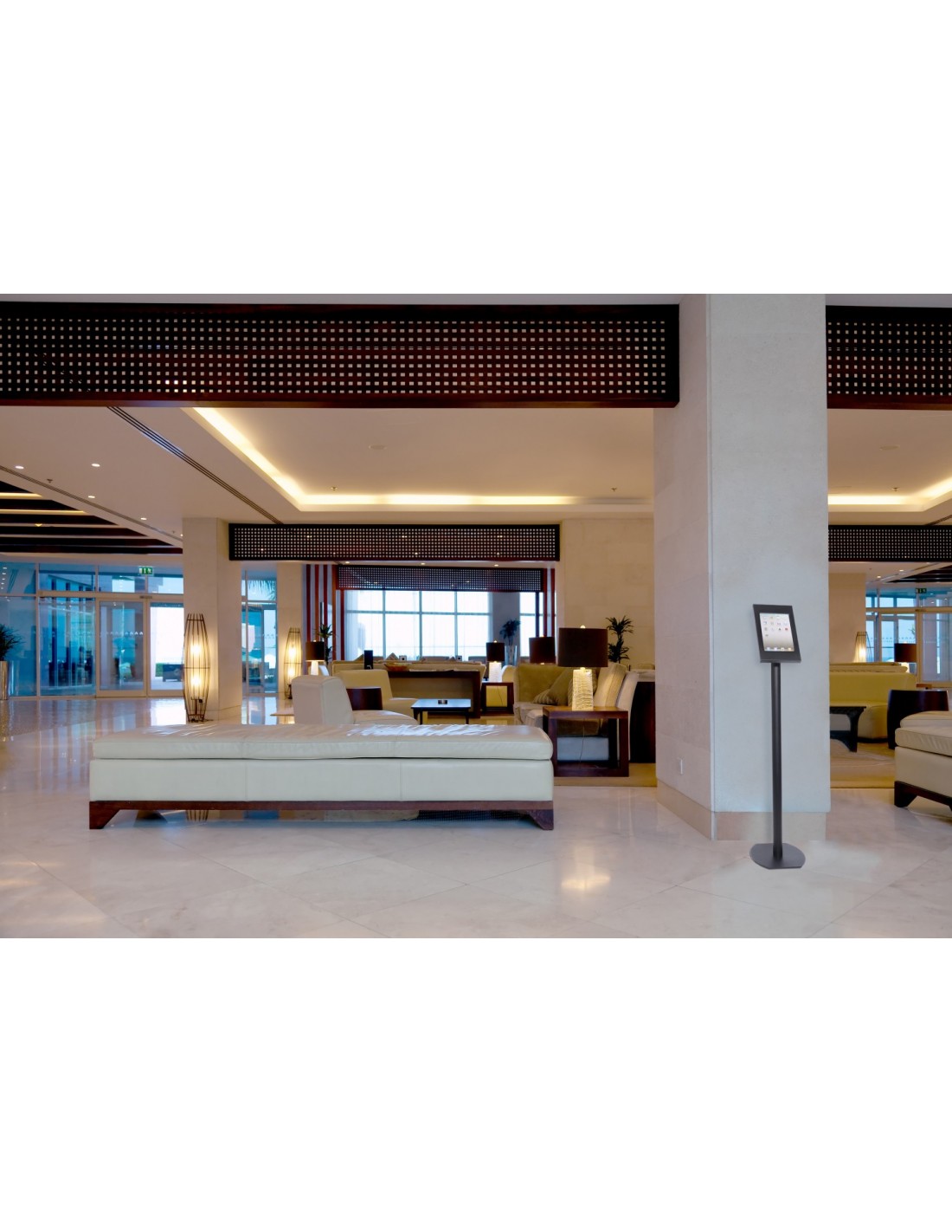 Lo stand da pavimento leggero e resistente per tablet iPad® di Peerless-AV® è la soluzione di segnaletica ideale per mostre permanenti o temporanee. Il comodo dispositivo a perno di trazione sul retro del supporto, consente all'utente di ruotare rapidamente e facilmente lo schermo in modo che corrisponda all'orientamento del contenuto. La gestione interna dei cavi consente ai cavi di uscire dalla parte posteriore del supporto o di continuare attraverso la base per un aspetto pulito. I fori passanti nella base consentono all'utente di fissare il supporto al pavimento o di lasciarlo libero per un rapido riposizionamento.
