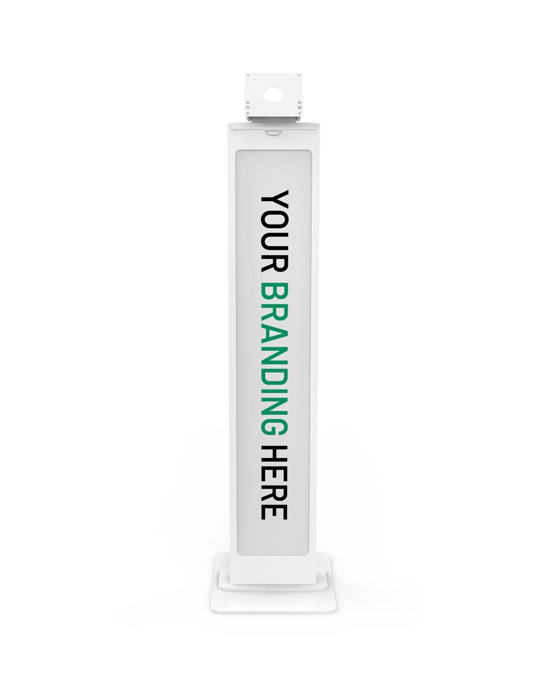 Il Brandable Floor Stand è una soluzione espositiva elegante e sicura, dotata di un pannello centrale personalizzabile per branding, messaggi promozionali o segnaletica direzionale.
