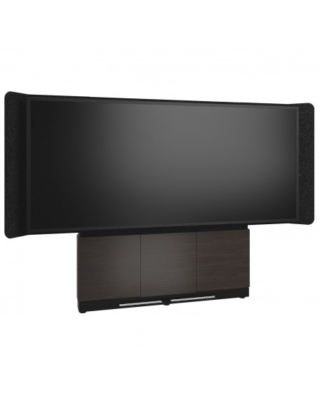 A prova di eco. Il supporto espositivo autoportante e la copertura del display sono avvolti in tessuto acustico grigio antracite per limitare il riverbero audio per un'esperienza audio della massima qualità a beneficio sia dei partecipanti locali che di quelli remoti.