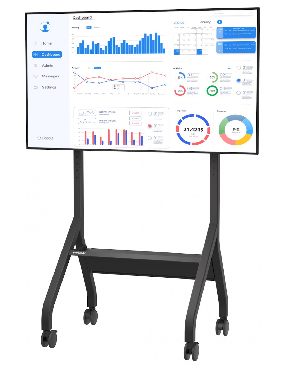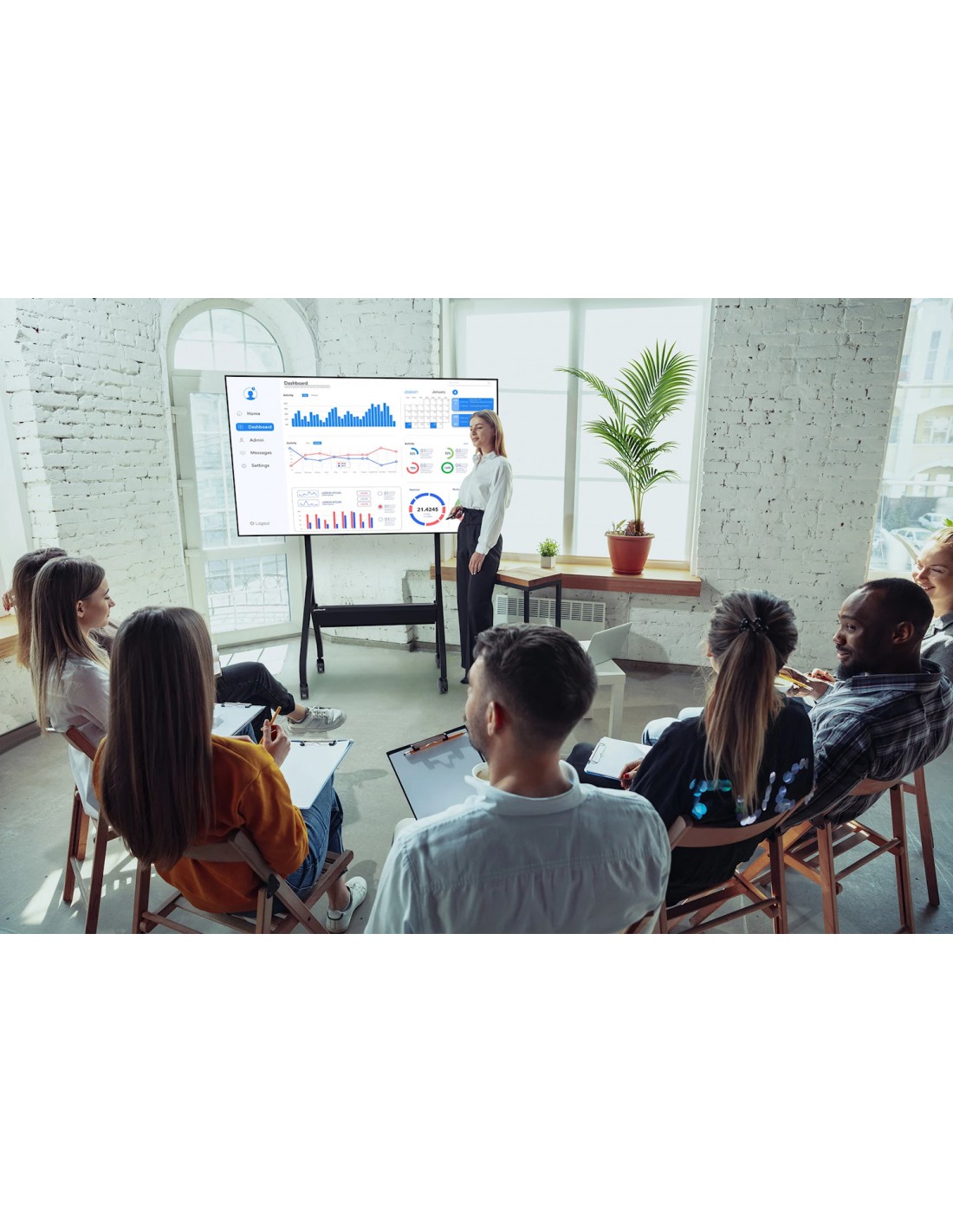 - Il design delle gambe offre un migliore movimento attorno al display, ad esempio quando si utilizza un display touch o si presenta al pubblico