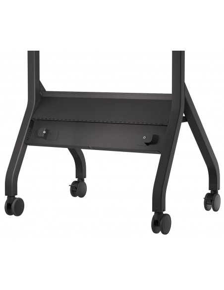 Il carrello per display interattivi a schermo piatto SR860 SmartMount® fornisce tutte le funzionalità necessarie per supportare l'implementazione del display in mobilità, sia in una sala riunioni che in un'aula. Il design minimalista e tubolare offre un'estetica pulita nascondendo tutti i cavi attraverso la struttura interna. Il carrello include anche un cavo di alimentazione passante IEC che può essere riposto ordinatamente nel vano incernierato posteriore. Ciò protegge il cavo da eventuali danni ma semplifica anche lo spostamento del display da una stanza all'altra. La copertura posteriore sagomata in ABS aiuta a nascondere eventuali cavi, lettori multimediali o mini PC, il che significa che dietro il display non sembrerà ingombrante se il carrello viene posizionato dove è visibile la parte posteriore.