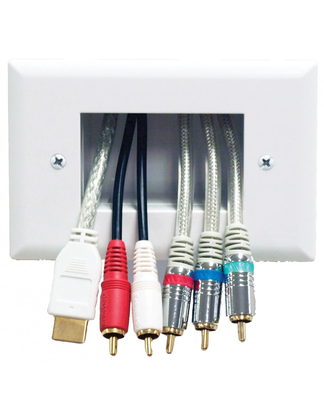 La placca a parete da incasso per il passaggio di cavi segnale a bassa tensione di Peerless-AV, fornisce una soluzione semplice e innovativa per l'installazione di cavi bassa tensione come HDMI o RCA dietro il display a schermo piatto, l'amplificatore o altri dispositivi audio e video. Le ingegnose "ali di fissaggio" semplificano l'installazione ed eliminano la necessità di installare dei frutti dedicati; le ali sono modellate direttamente per la piastra a parete Easy Mount e si fissano saldamente contro il retro del cartongesso. La piastra per cavi standard Easy Mount ha la capacità di una piastra doppia e può essere installata verticalmente o orizzontalmente. Questa soluzione potente ma elegante offre la massima bellezza, incredibile resistenza e facilità di installazione.