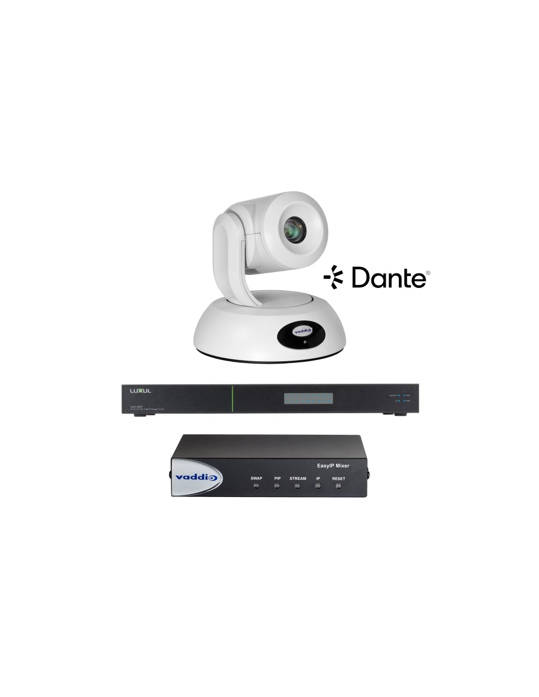 Bundle Vaddio EasyIP 20 Mixer Base Kit Dante Bianco (Telecamera + Mixer + Switch)