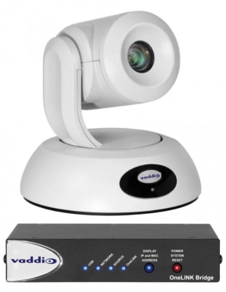 Le uscite video includono la possibilità di streaming simultaneo HDBaseT, HDMI e IP (H.264). Connessione diretta a dispositivi compatibili HDBaseT o abbinamento con ricevitori Vaddio OneLINK per semplificare il cablaggio ed estendere la distanza di installazione.