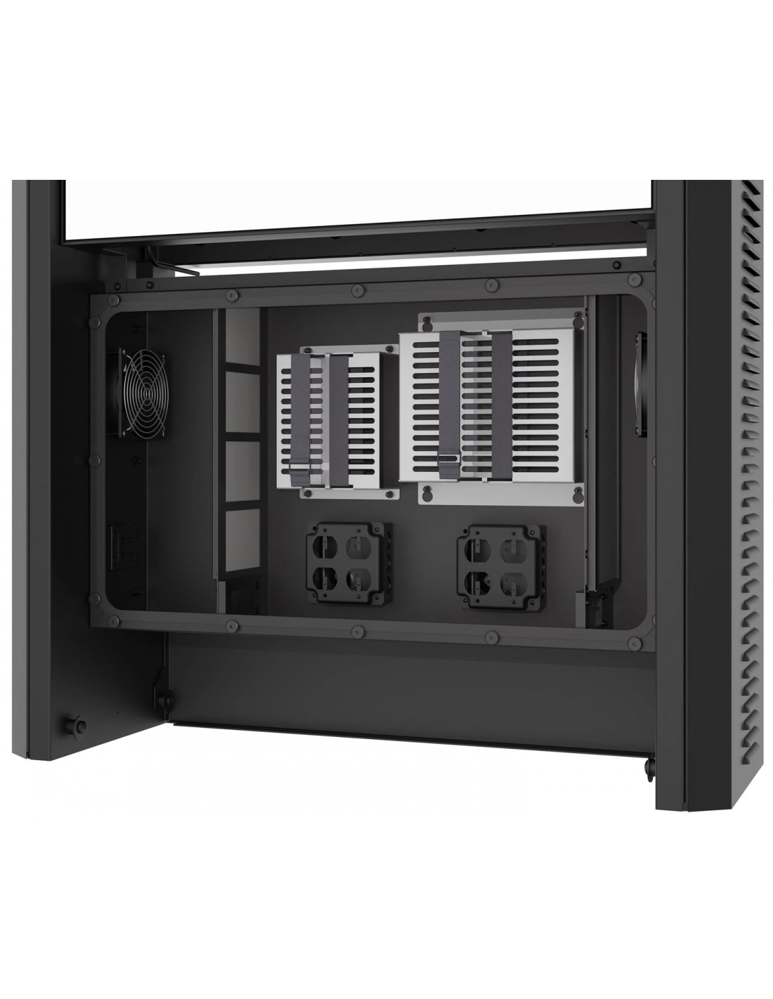 - Le bocchette laterali a persiana consentono la ventilazione del display e dei componenti, mantenendo allo stesso tempo cavi e altri elementi interni nascosti alla vista per una pulizia dell'installazione